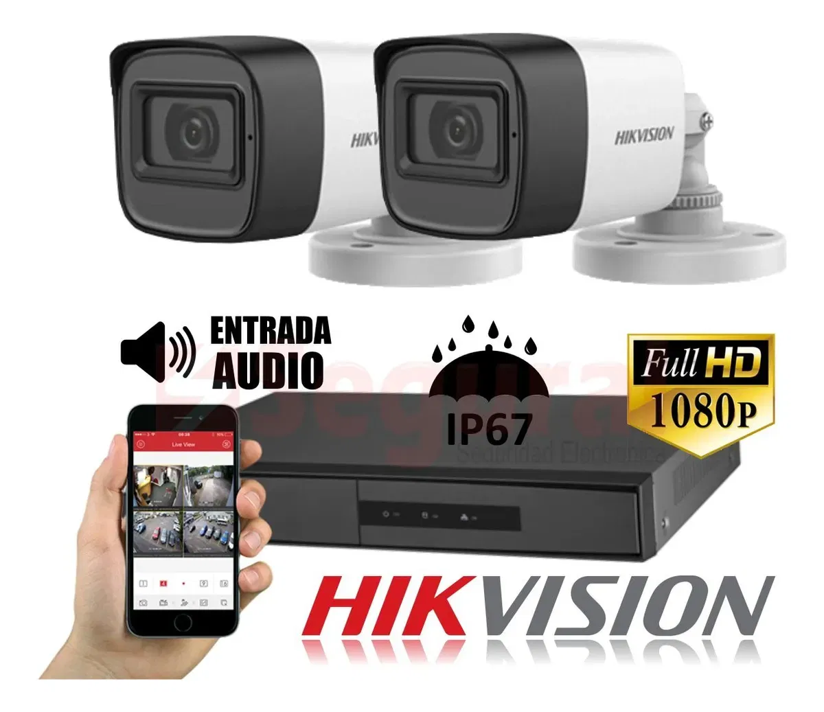 • 2 Cámaras de Seguridad Infrarrojas HIKVISION TURBO HD 1080P DS-2CE16D0T- EXIPF
