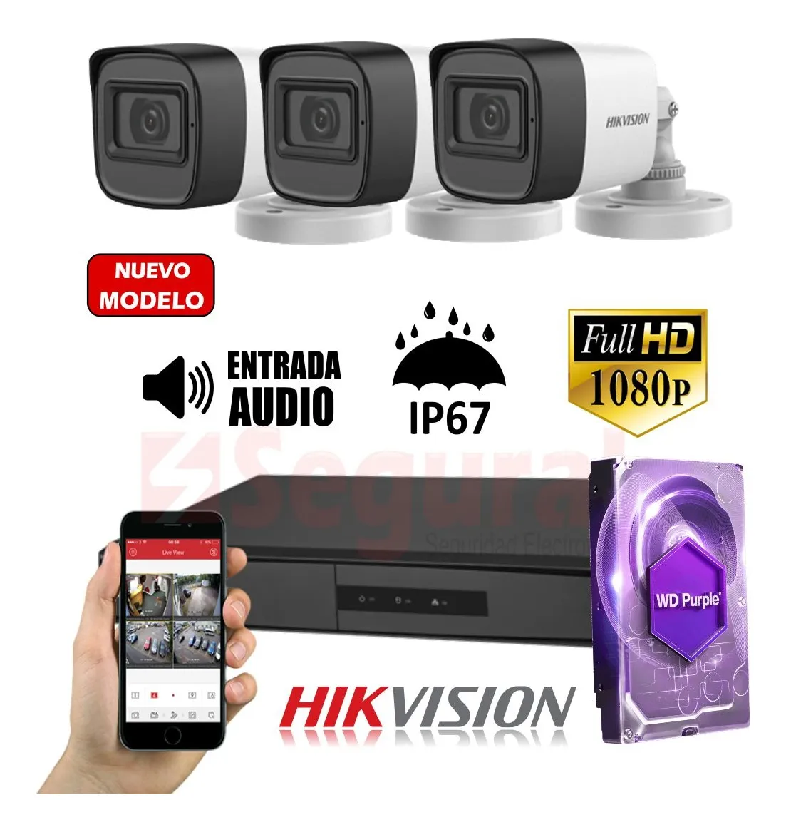 • 3 Cámaras de Seguridad Infrarrojas HIKVISION TURBO HD-TVI 1080P DS-2CE16D0T-EXIPF