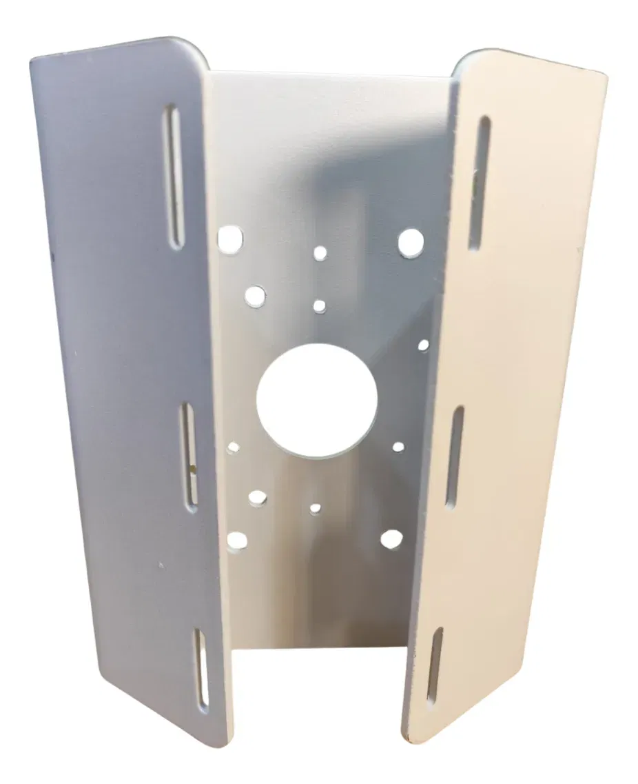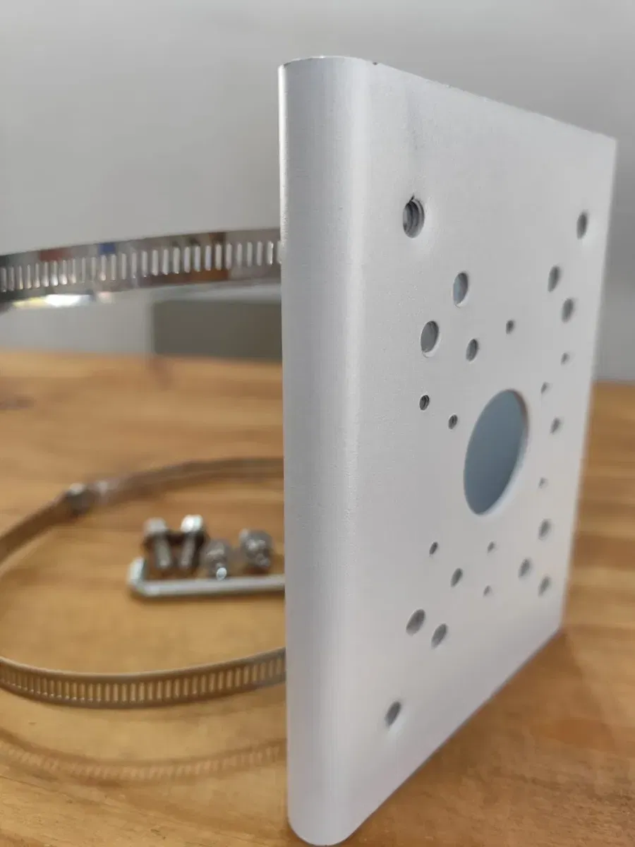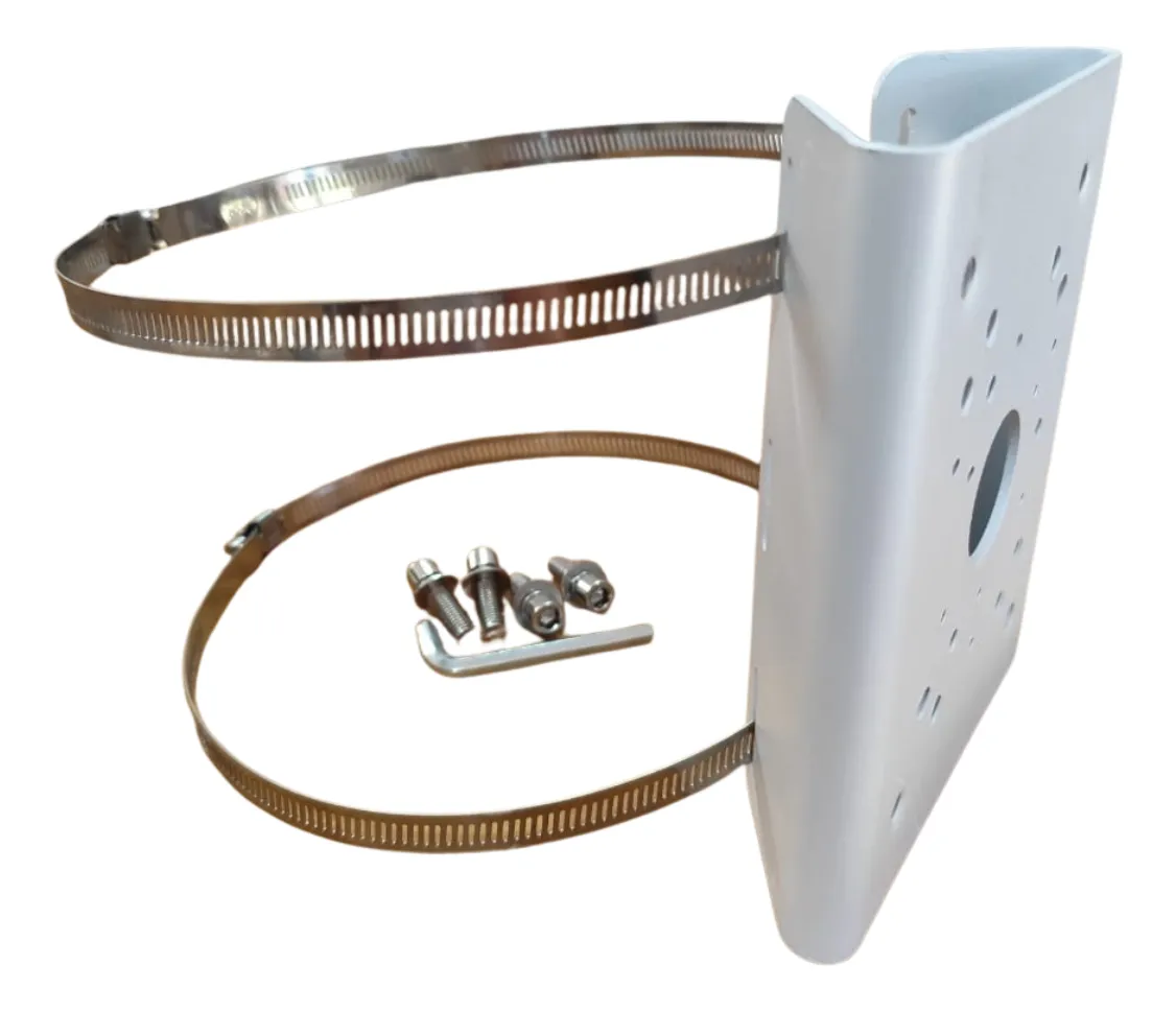 Soporte de poste para Camaras CCTV Medidas: 17cm ALTO X 13.4cm DE ANCHO X 4.5cm PROFUNDIDAD CONTENIDO DE LA CAJA: 1 Soporte de Montaje para Poste color blanco MODELO PFA-150 2 Precintos (Diámetro de los precintos totalmente abiertos 20cm) (Largo de los precintos 64cm) 4 Tornillos M8x25 1 Llave Allen Capacidad Robusta: Soporta cargas de hasta 10 kg, asegurando una instalación segura y estable para cámaras de red. Construcción Duradera. Compatibilidad: Diseñado para cámaras de vigilancia, brinda flexibilidad en la instalación. Fácil Instalación: Incluye todo lo necesario en la caja, con herramientas y tornillos para una instalación rápida.