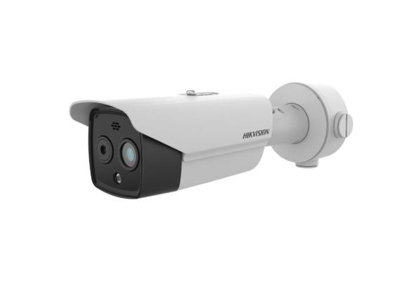 Cámara IP bullet dual con sensor térmico VOx 256×192 px (NETD = 40 mK, lente 3.6mm F1.0) y módulo óptico 4MP (2688×1520, lente 4.3mm F1.6). Ofrece medición de temperatura entre –20°C y 550°C con precisión ±2°C o ±2%, incluida detección de fuego, humo y alarma por anomalías térmicas. Permite análisis VCA para detección de personas/vehículos, con fusión bi-espectral y visualización de imagen dentro de la térmica (PIP). Incluye luz blanca + alarma de audio (30m), almacenamiento microSD hasta 256GB, compresión H.265/H.264/MJPEG, WDR de 120dB, reducción de ruido 3D-DNR y protocolo ONVIF. Carcasa IP67 e IK10, alimentación PoE (802.3af), 12VDC o 24VAC, consumo =8.5W. Dimensiones ~321 × 106 × 107mm; peso ~1.55kg; rango operativo –40°C a +65°C.