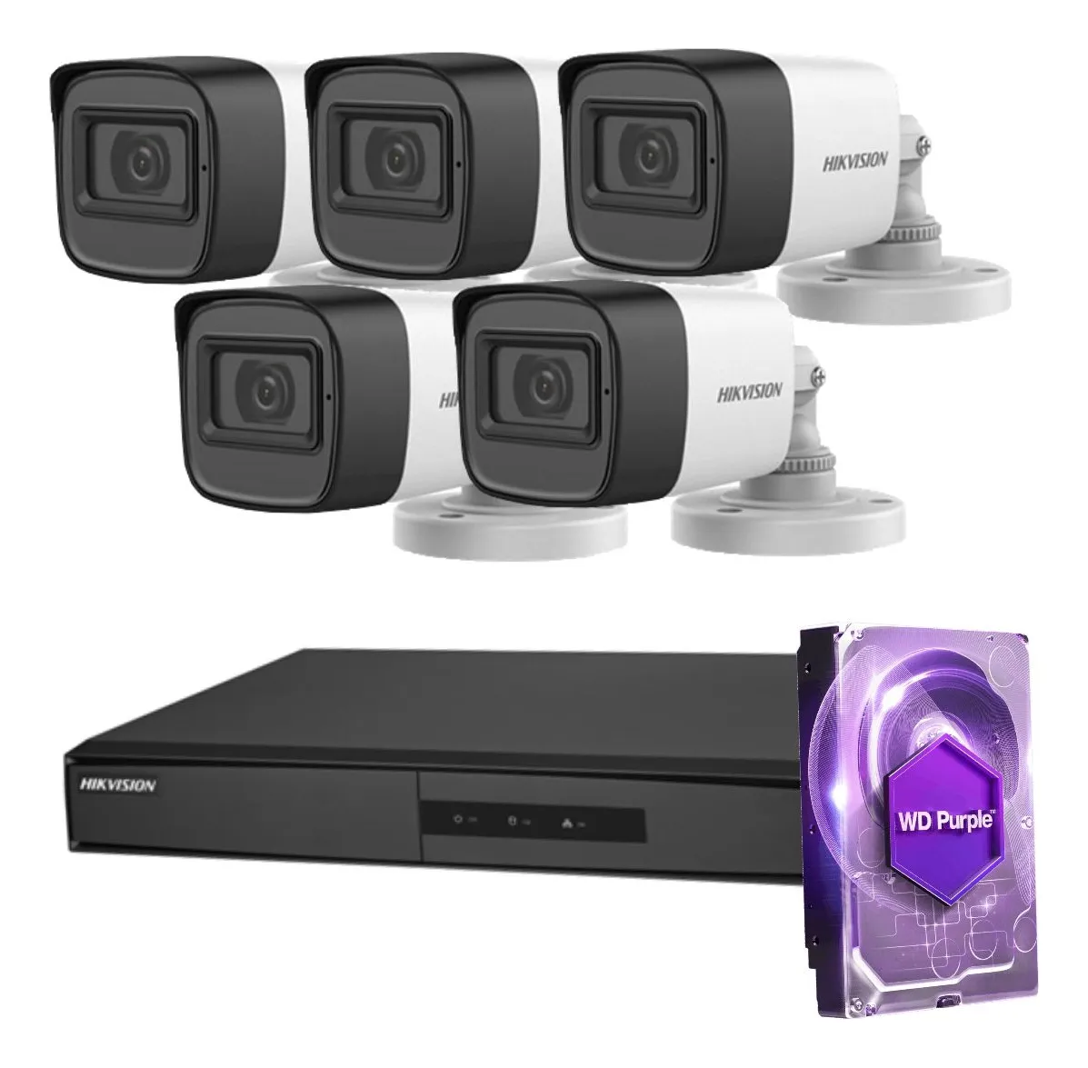 • 5 Cámaras de Seguridad Infrarrojas 16DOT EXIPF HIKVISION TURBO 1080P