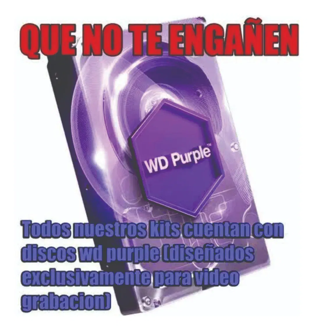 ATENCION: LOS DISCOS QUE OFRECEMOS SON PURPURA, ESPECIALMENTE DISEÑADOS PARA LA GRABACION DE CAMARAS DE SEGURIDAD, NO SON BLUE YA QUE LA VIDA UTIL DE ESTOS ES MUY BAJA Y SOLO SIRVEN PARA DATOS. TAMBIEN CONTAMOS CON CABLE UTP PARA CONECTAR LAS CAMARAS HASTA EL DVR